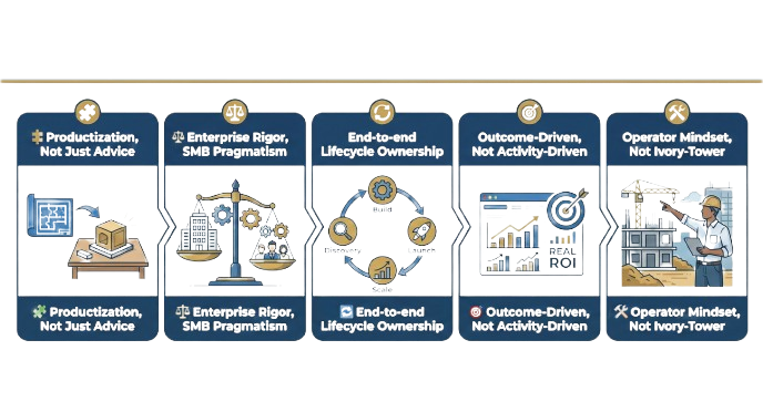 Operator mindset, not ivory-tower consulting